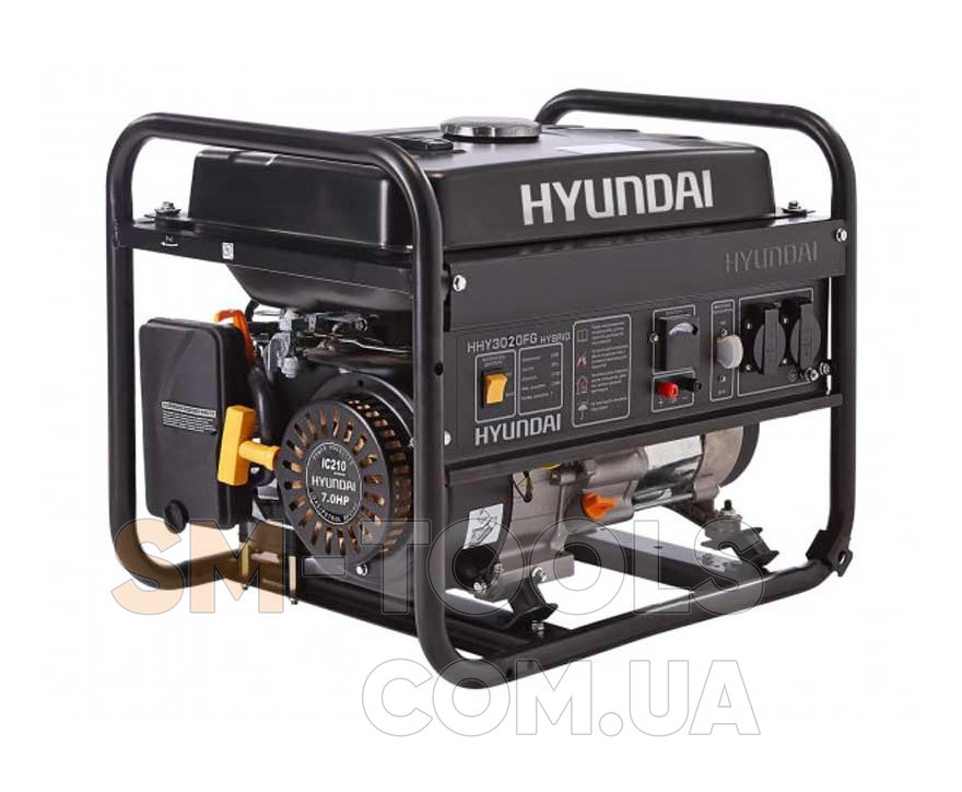 Достоинства модели генератора Hyundai HHY 3020FG с двухтопливным двигателем: