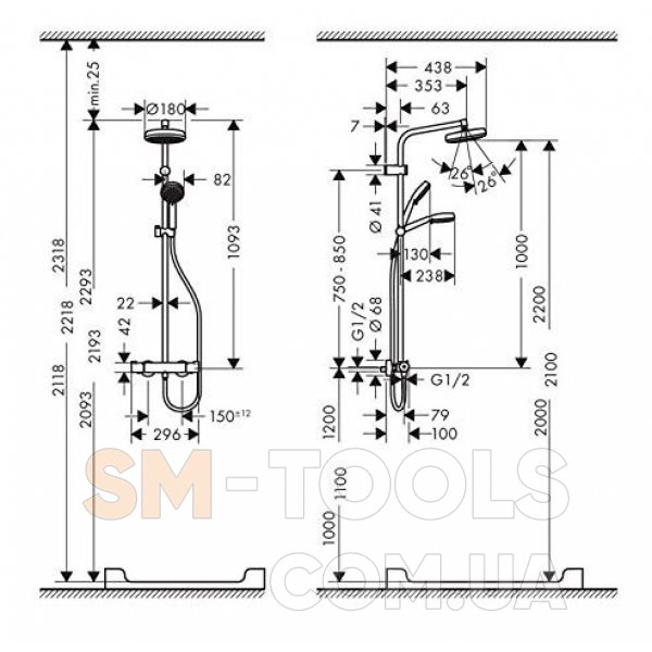 Душевая система Hansgrohe Showerpipe MyClub 180