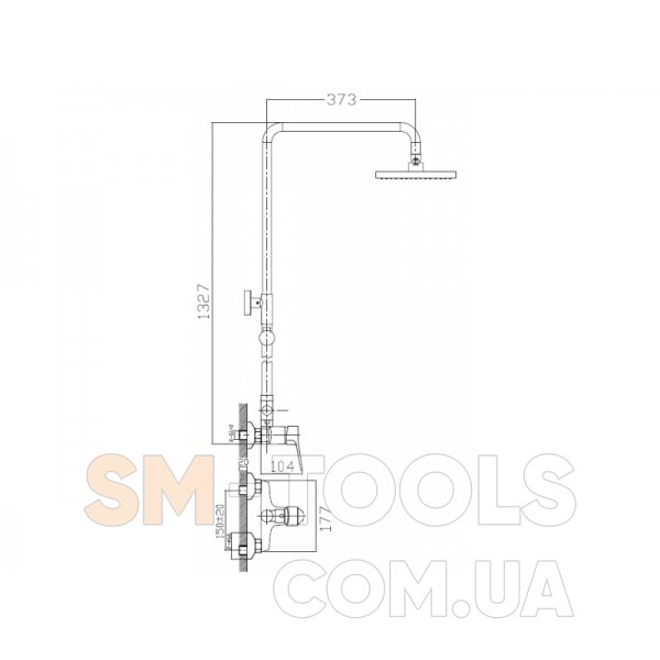 Комплектация душевой стойки С ручным душем, Наружный смеситель, Без излива, С верхним душем