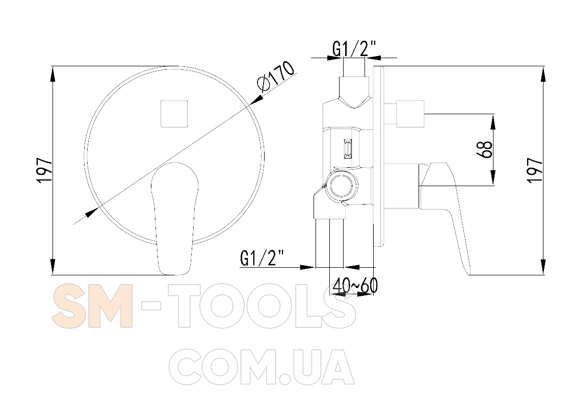Комплектация встраиваемого смесителя Внешняя и скрытая части