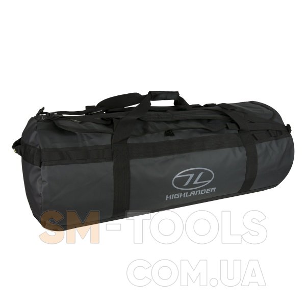 Highlander Lomond Tarpaulin Duffle 120 Black надежная сумка-рюкзак из износоустойчивого материала для сложных задач, экспедиций, занятий водными видами спорта и многократных поездок в любую погоду, когда требуется сохранить вещи сухими и неповрежденными. Сумка не является на 100% водонепроницаемой, однако пошита из водозащищенного материала и имеет конструкцию препятствующую проникновению влаги даже в сильный дождь. Благодаря наличию плечевых шлеек может использоваться как рюкзак. Боковые и верхние ручки обхватывают сумку по всему периметру и позволяют транспортировать тяжелую поклажу. Также прочная вместительная сумка из водозащищенного материала - это находка для рыбака.