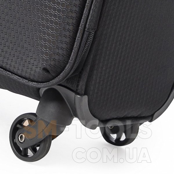 SOFT SHELL POLYESTER 500D - ткань из полиэстера с толщиной нити 500D, имеющая объемный крупный узор, создающий внешнюю игру света, и с внутреннее полиуретановое покрытие, защищающее содержимое чемодана от намокания во время дождя средней интенсивности. Также ткань обладает хорошей износостойкостью, и не разрушается под действием ультрафиолетового излучения.