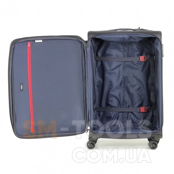 Для большей безопасности вещей предусмотрен удобный кодовый замок системы TSA. Внутри чемодан оснащен компрессионными стяжками и карманом на молнии. Мелкие вещи и вещи первой необходимости можно разместить в фасадном внешнем кармане. Четыре полноповоротных сдвоенных полиуретановых колеса обеспечивают плавный ход и простое управление чемоданом с помощью телескопической ручки, фиксируемой в двух положениях. Для защиты чемодана от внешних повреждений предусмотрена пластиковая защита дна и углов корпуса. Предусмотрена возможность увеличить полезный объем чемодана до 10%, благодаря наличию клапана, расстегнув специальную молнию по периферии чемодана.