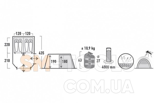 Габариты внешней палатки (ДхШхВ), мм: 4350x2400x1900