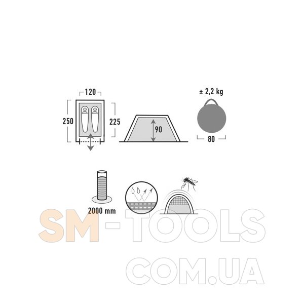 Габариты внешней палатки (ДхШхВ), мм: 2500x1200x900
