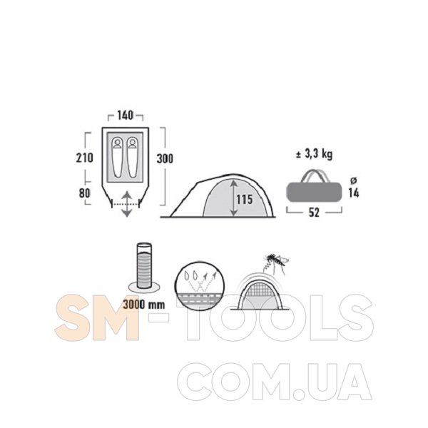 Вес палатки: 3.3 кг