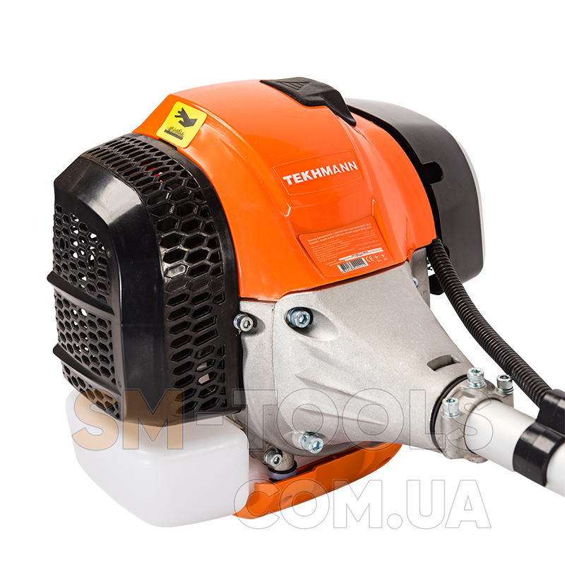 Двигатель в сборе с деталями крепления рабочего органа (чашкой крепления, фиксирующей шайбой, гайкой) и защитными кожухами;