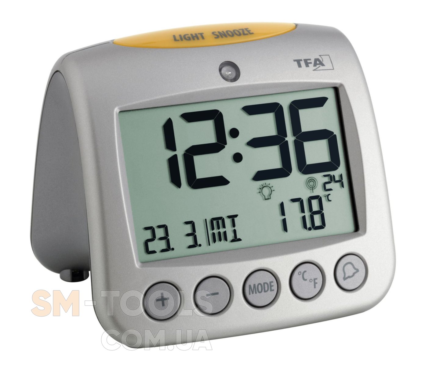 Функции Календарь, 2 будильника, Нарастающий сигнал будильника, Функция повтора сигнала будильника "Snooze", Термометр в °С и °F (-5...+50°C)