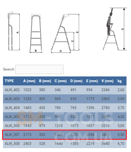 Описание Стремянка ELKOP ALW 507: