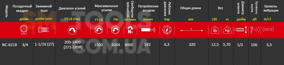 Гайковерт пневматический ударный NC-6218 предназначен для работы с резьбовыми соединениями.