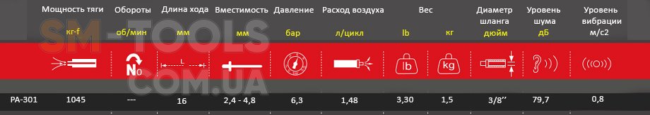 Характеристики Пневматический заклёпочник Mighty Seven PA-301:
