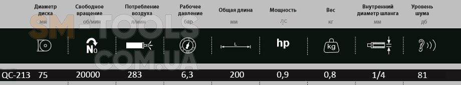 Пневматическая прямая шлифмашина Mighty Seven QC-213