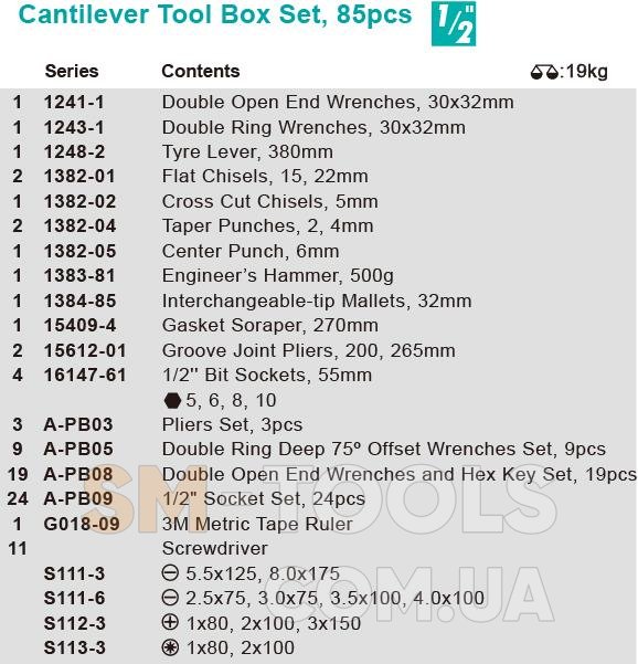 Ящик с инструментами Whirlpower A22-4085 (85 предметов)