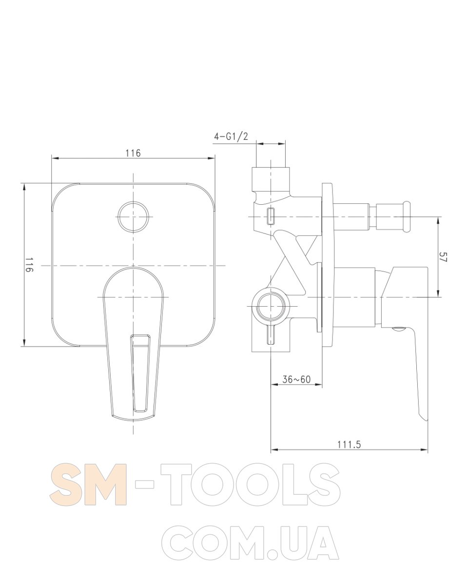 Комплектация встраиваемого смесителя Внешняя и скрытая части