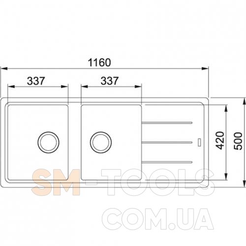 Размеры рабочей поверхности 1160х500 мм (размер мойки)