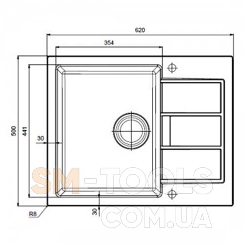 Размеры рабочей поверхности 620х500 мм (розмір мийки)