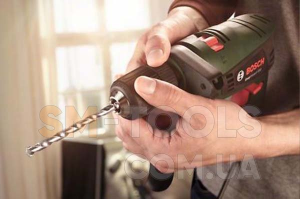 Ударная дрель BOSCH EasyImpact 550 БЗП - новинка, мощный 3-режимный электроинструмент из серии "Домашний мастер" в компактном исполнении корпуса с минимальным весом (всего 1,5 кг), работает в режиме "Завинчивание/Сверление/Сверление с ударом". Модель ударной электродрели BOSCH EasyImpact 550 БЗП предназначена для работы с бетоном (сверление, завинчивание шурупов), древесиной (сверление, завинчивание шурупов), черными металлами (сверление, завинчивание шурупов), пластиком (сверление, завинчивание шурупов), камнем (сверление, завинчивание шурупов), натуральными материалами (сверление). Мощный двигатель 550 Вт, установленный в электродрель ударную BOSCH EasyImpact 550 БЗП, позволяет выполнять сверление бетона. Дрель BOSCH EasyImpact 550 БЗП оснащена 2-кулачковым БЗП для быстрой смены оснастки. Наличие реверса позволяет выполнять выкручивание шурупов и устранять ситуации при заклинивании оснастки в заготовке. Частота вращения оснастки регулируется электроникой посредством кнопочного выключателя - благодаря точной регулировке, возможно сделать засверливание гладких поверхностей и закручивание шурупов. В этой модели реализована инновационная дополнительная рукоятка с максимально надежной фиксацией и удобным хватом без скольжения.