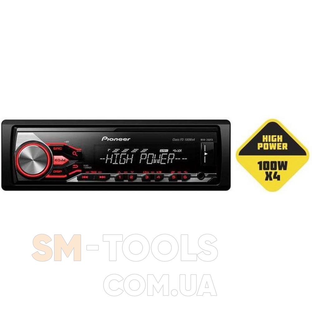 Pioneer MVH-280FD отличается оригинальным встроенным усилителем класса FD, который разработан специально для получения высокой выходной мощности при минимально возможном энергопотреблении. Инновационная схемотехника позволила получить высокий КПД и радикально снизить тепловые потери. Головные устройства способны работать стабильно продолжительное время на предельных мощностях, при этом практически не нагреваясь.