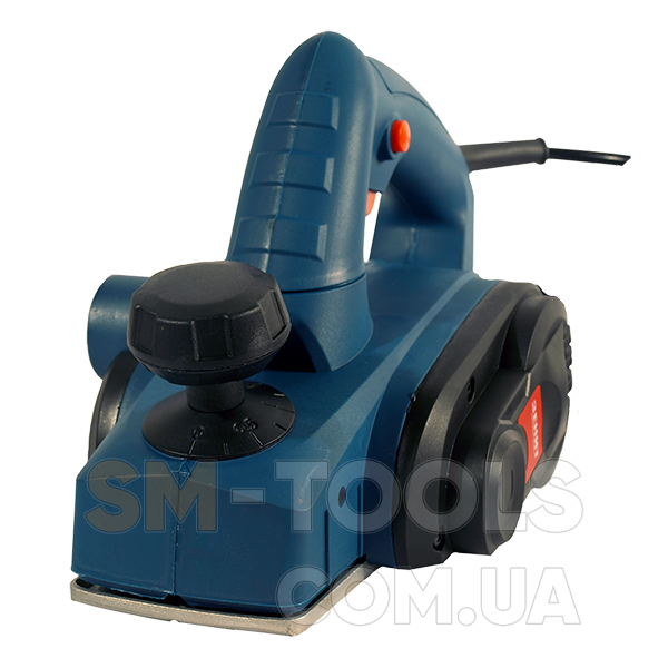 Благодаря этому барабаном с двумя ножами обеспечивается точная обработка на заданную глубину. Глубина обработки выставляется рукояткой на передней грани. Воздушное охлаждение продлевает срок службы инструмента и обеспечивает своевременный отбор стружки, для удаления которой предусмотрен патрубок подключения внешнего пылесоса. Прочный пластиковый корпус не подвержен коррозии и устойчив к ударам. Наличие блокировки случайного пуска предохраняет от травматизма. Глубина строгания 2мм, возможность выборка четверти глубиной до 10 мм.