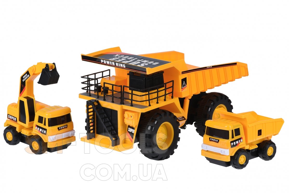 Набор специальной техники для работ в карьере. В комплекте 3 вида транспортных средства. Особенно детей поразит огромный карьерный самосвал. Также в комплекте 2 машины поменьше - самосвал и экскаватор. Машины достаточно реалистичны и детализированы. Количество игрушечных моделей привлечет к игре многих детей. Играть в компании познавательно; дети смогут воспроизвести многие сюжеты и весело провести время. Набор в коробке. Размер упаковки - 69х24,5Х25 см. Все машины изготовлены из безопасного, нетоксичного пластика. Рекомендуемый возраст: 3+.