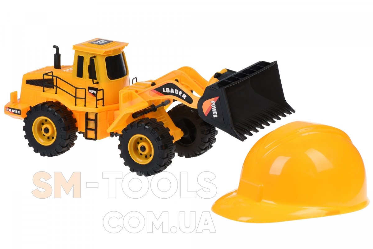 В наборе специальной техники - трактор-погрузчик и каска. Такой комплект способен сделать игры более интересными и креативными; дети будут придумывать сюжеты и таким образом развивать воображение. Трактор массивный, с реалистичными деталями. Машина размером 40х15х19 см. Размер каски раз для головы ребенка. Все элементы изготовлены из пластика. Он качественный и нетоксичен. Набор для детей от 3 лет.