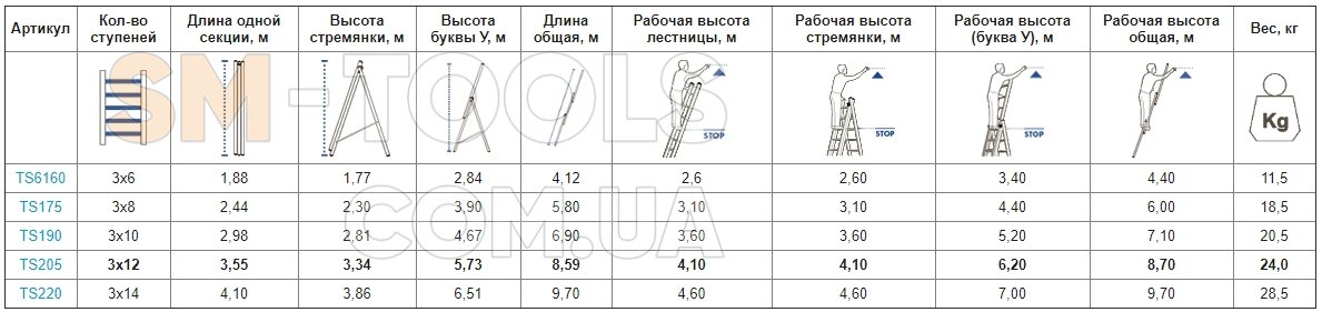 Тип лестницы и стремянки: трехсекционные