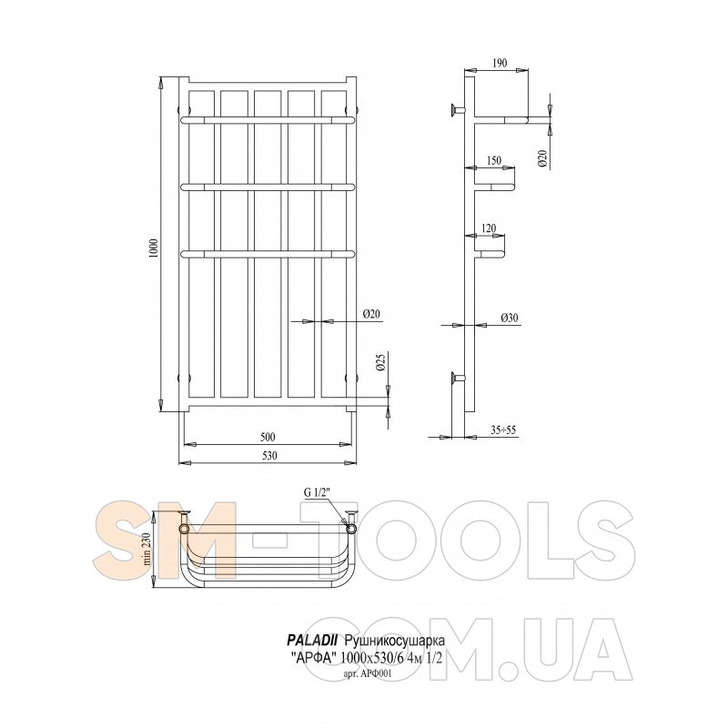 Рушникосушарка PALADii Арфа 1000х530 / 5 АРФ001