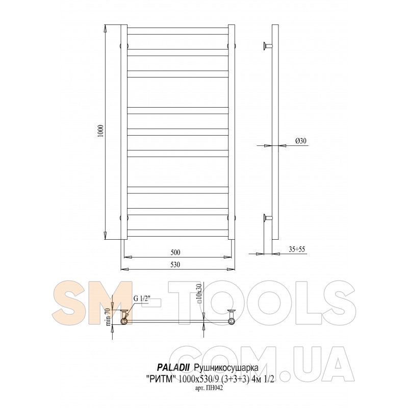 Рушникосушарка PALADii Ритм 1000х530 / 9 ПН042