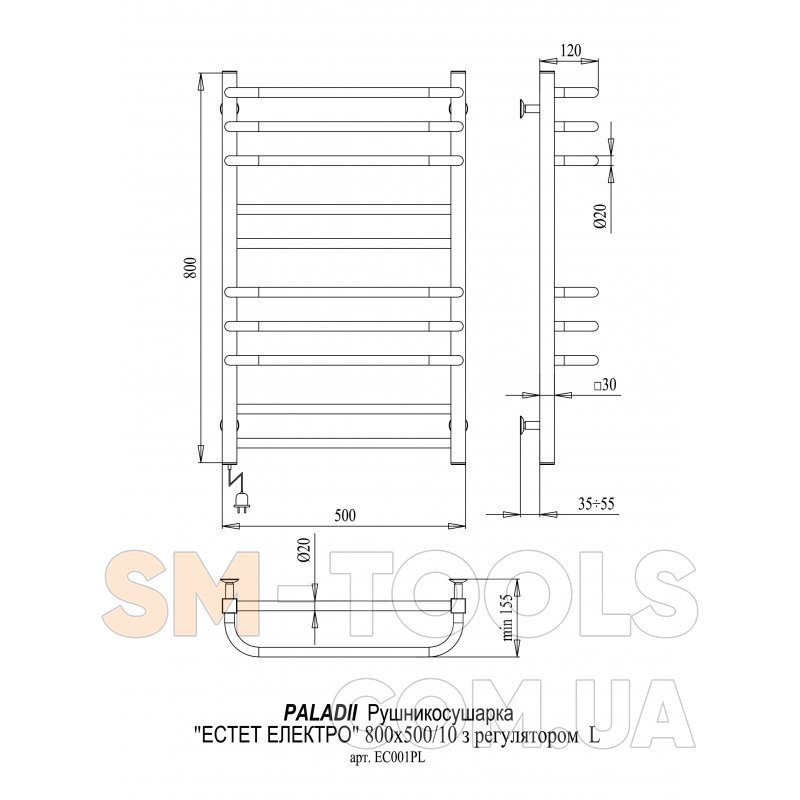 Рушникосушарка PALADii Естет Електро 800х500 / 10 ЕС001РL