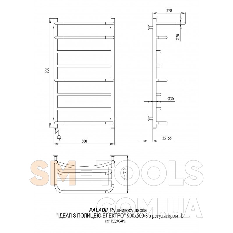 Рушникосушарка PALADii Ідеал з полицею Електро 900х500 / 8 ІДе004РL