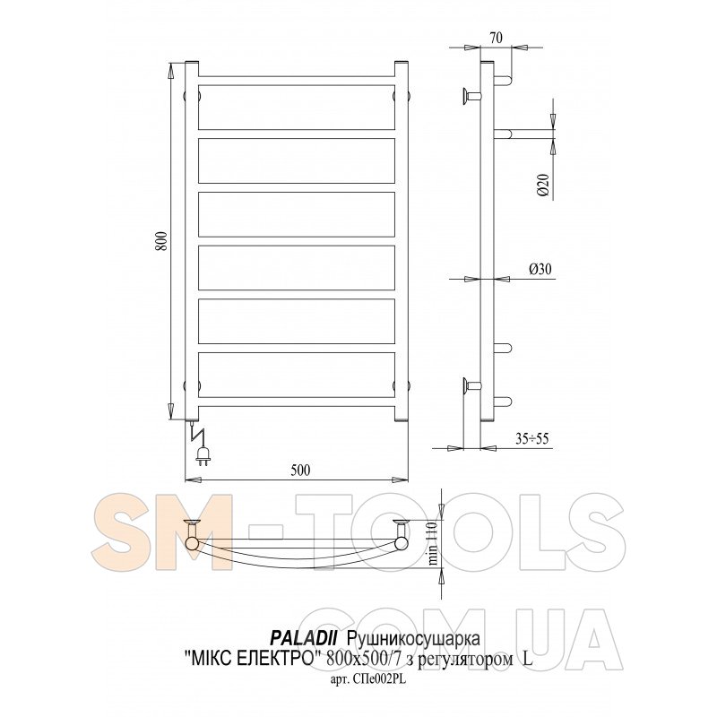 Рушникосушарка PALADii Мікс Електро 800х500 / 7 СПе002РL