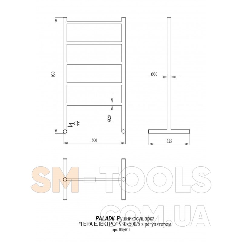 Рушникосушарка PALADii Гера Електро 930х500 / 5 НКр001