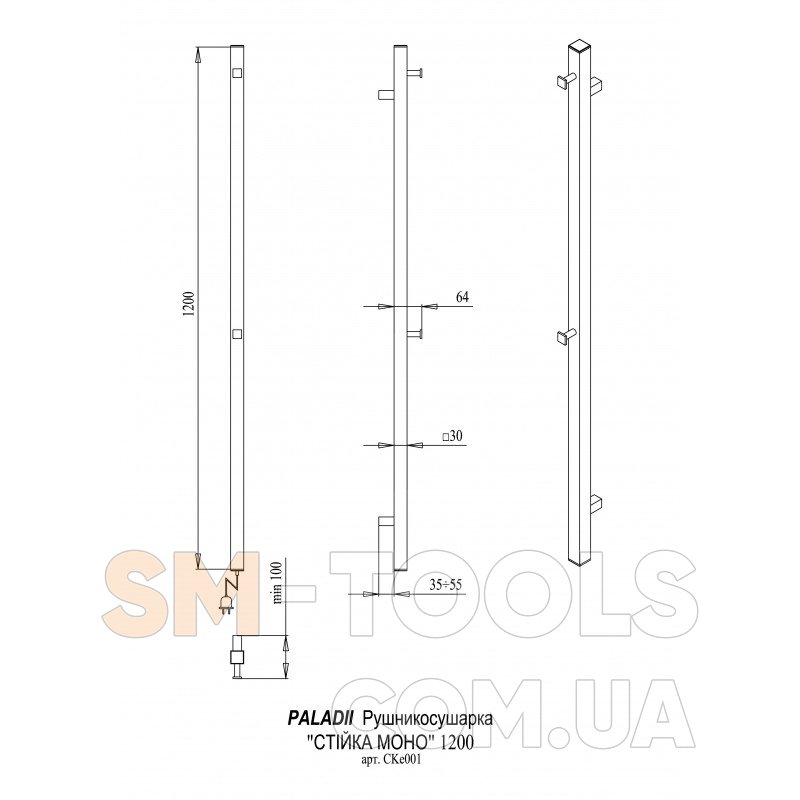 Рушникосушарка PALADii Стойка Моно Електро 1200 СКе001