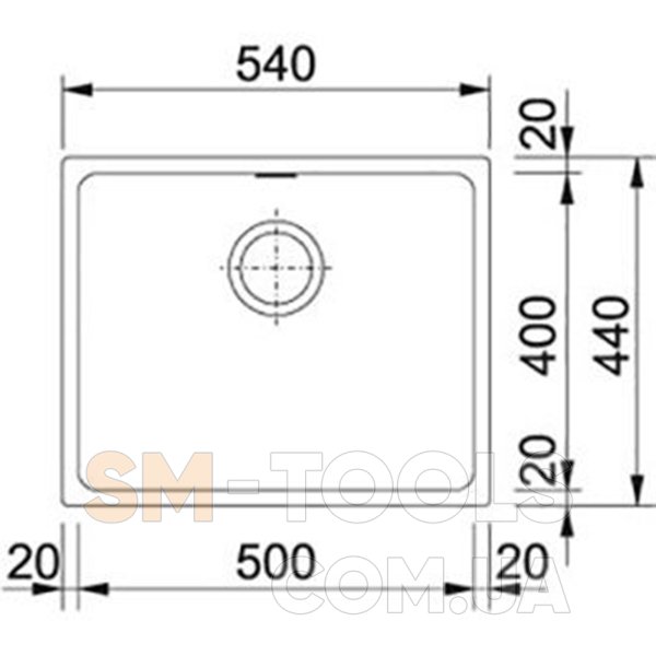 Размеры врезного отверстия (под столешницу) 500x400 мм