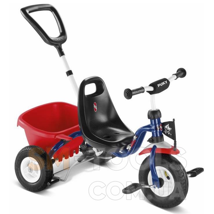 Трехколесный велосипед PUKY CAT 1L непревзойденного немецкого качества предназначен для детей от 2 до 4 лет. Серия "Капитан Шарки" выпущена ограниченной партией по мотивам очень популярного в Европе мультсериала. Детям, наверняка, понравится пиратская расцветка велосипеда. Велосипед оснащен удобной ручкой для родителя, которую можно регулировать по высоте. Когда Ваша малыш подрастет, сможет дотягиваться до педалей и крутить их, Вы с радостью сможете отсоединить ручку. Особенностью модели является возможность блокировки руля и переднего колеса.Сиденье имеет анатомическую форму и может перемещаться вдоль рамы на 6,5 см, чтобы найти положение, идеально подходящее Вашему ребенку. Велосипед оборудован тормозом задних колес и откидывающимся кузовом с фиксатором. Переднее колесо может свободно вращаться, независимо от педалей, или может быть жестко сцеплено с ними. Руль имеет ограничение угла поворота, и может быть зафиксирован в положении вперед. Ребенок может нажимать на ручку тормоза задних колес. Для остановки малыш должен потянуть ручку на себя. Шины колес накачиваемые, а это помогает снизить вибрацию при езде по неровной поверхности. Этот велосипед гарантированно имеет бесшумный и мягкий ход.
