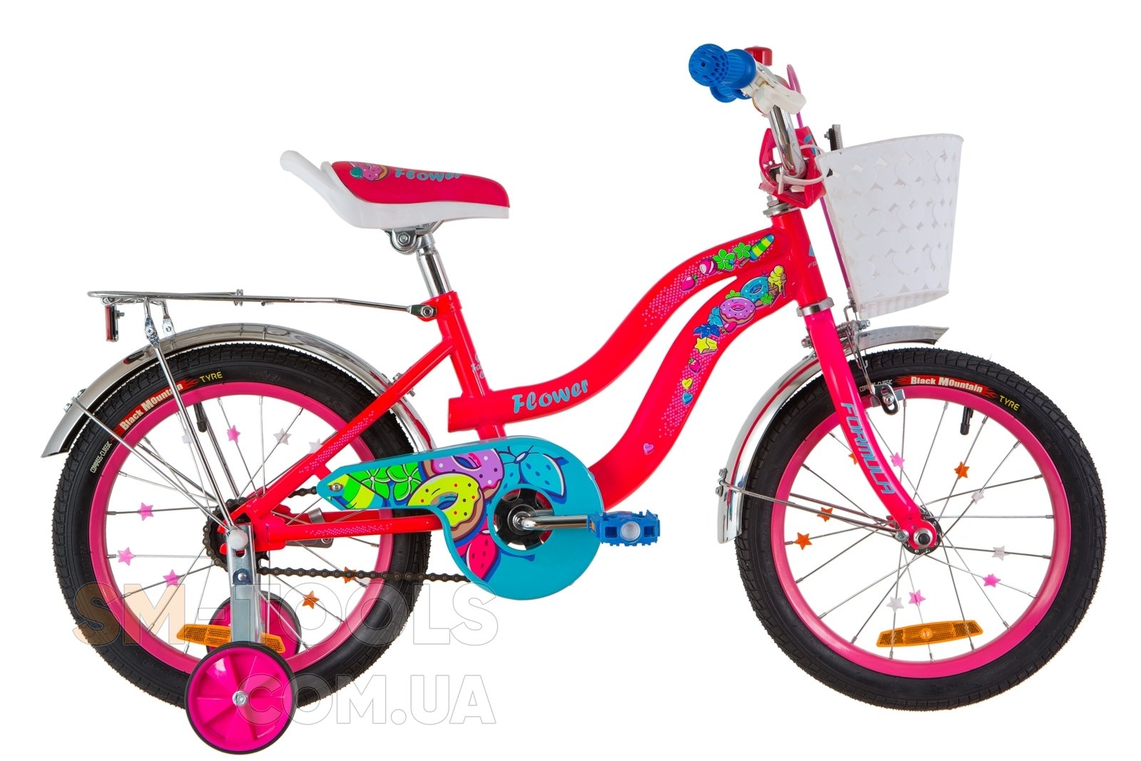 Дополнительно звонок; боковые тренировочные колеса; корзина; грязезащитные крылья
