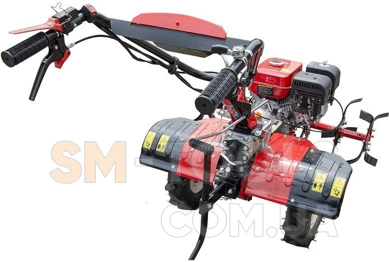 Культиватор представляет собой самоходную машину, для управления которой не нужно прилагать практически никаких титанических усилий. Все необходимые органы управления удобно расположены на левой рукоятке. В случае необходимости пользователь может откорректировать положение ручек исходя от своего роста или характера выполняемой работы.
