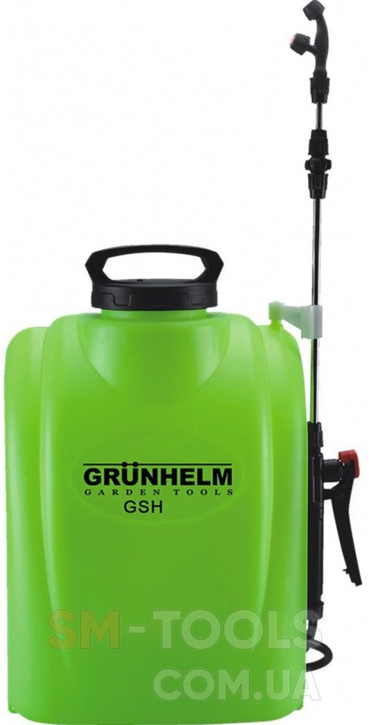 Обприскувач акумуляторний Grunhelm GHS -18 (81439) - сучасний апарат, призначений для боротьби з шкідниками, бур'янами та хворобами рослин. Призначений для використання, як на маленьких присадибних ділянках, так і в професійних цілях на великих площах. Модель оснащена діафрагмовим насосом, що живиться від акумуляторної батареї ємністю 8А * год. Максимальна тривалість роботи при повній зарядці акумулятора складає 4 години роботи. Цього цілком вистачає для комфортного користування. Зручність у роботі забезпечується зручним ремнем через плече ранцевого типу.
