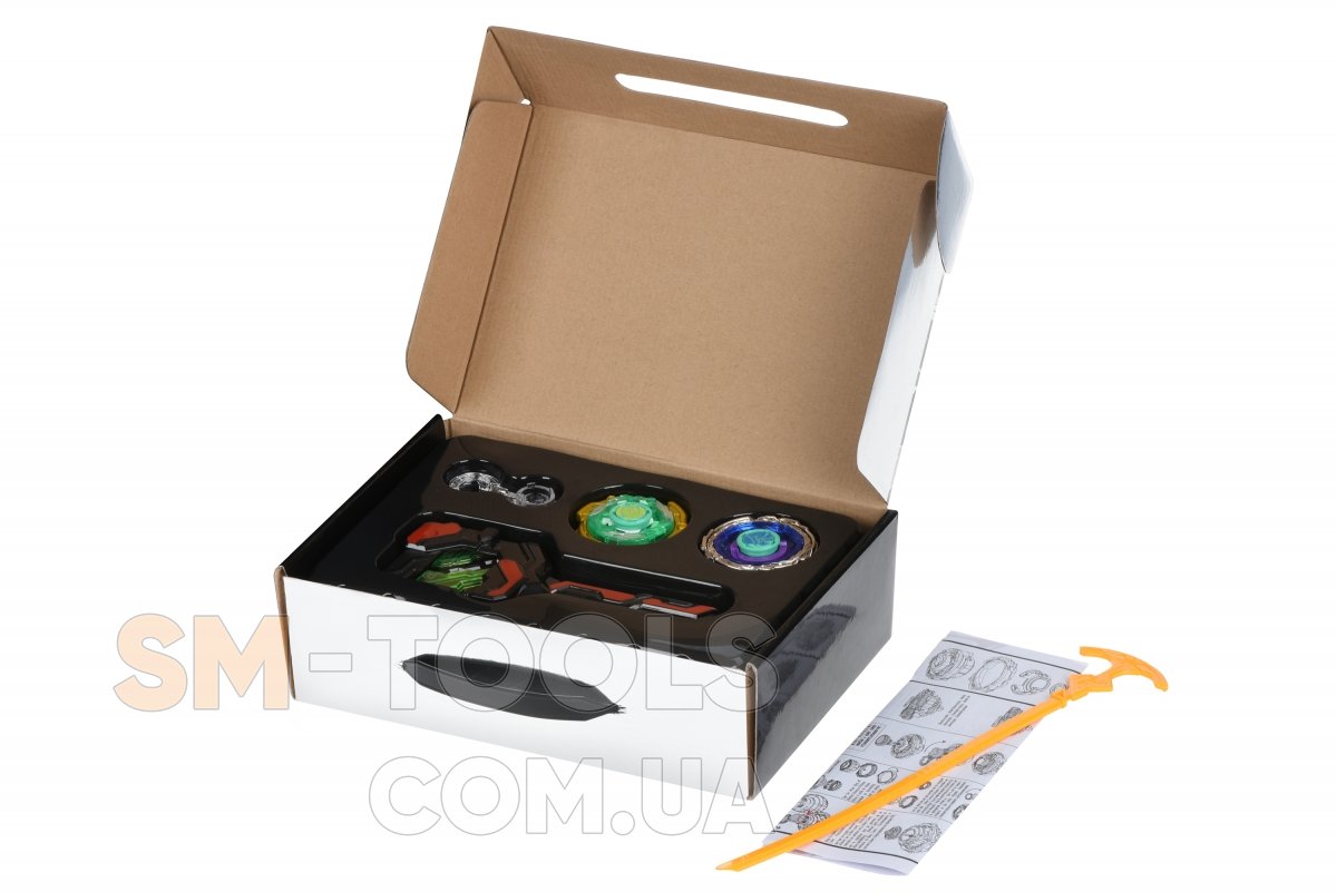 Также в наборе: стартовое устройство черно-зеленого цвета, стартовый цепь, удобная рукоятка черно-красного цвета, ключ для сбора волчков, инструкция пользователя. Волчок поставляется в стильной серебристой упаковке. Волчок Infinity Nado способен побеждать бойцов отличной от Nado армии волчков.