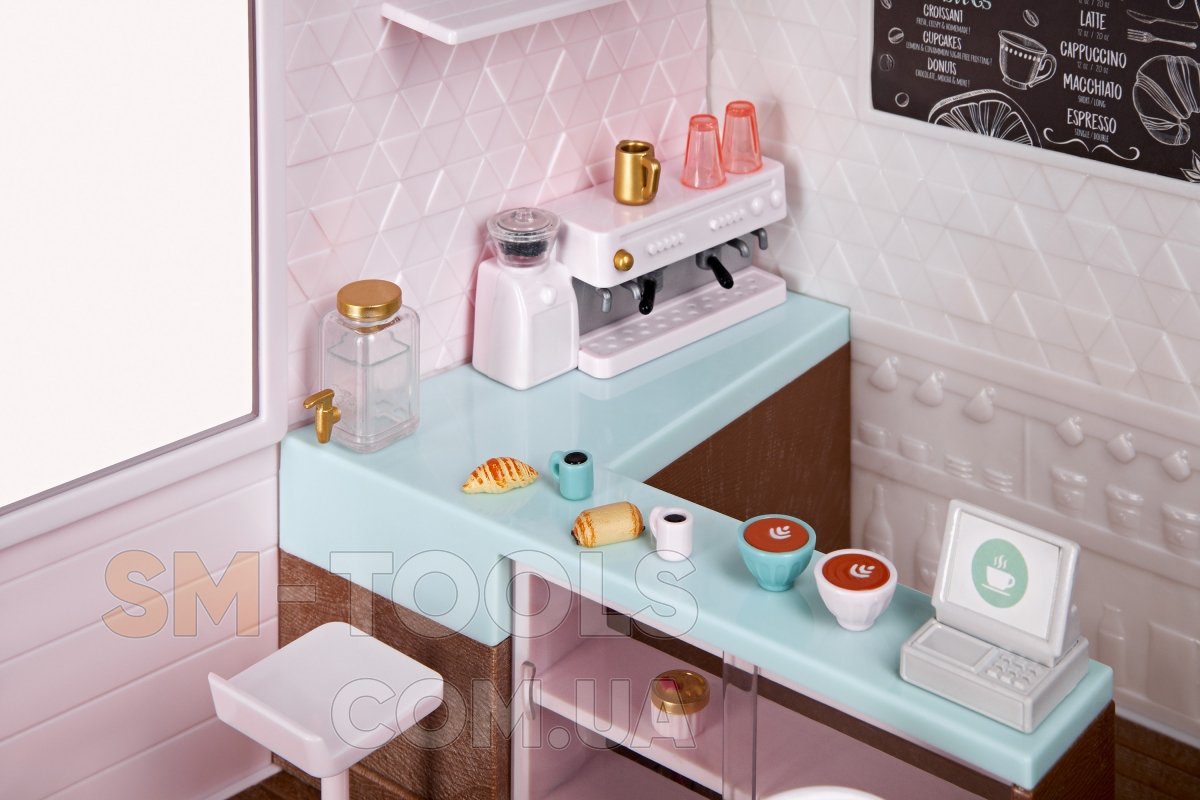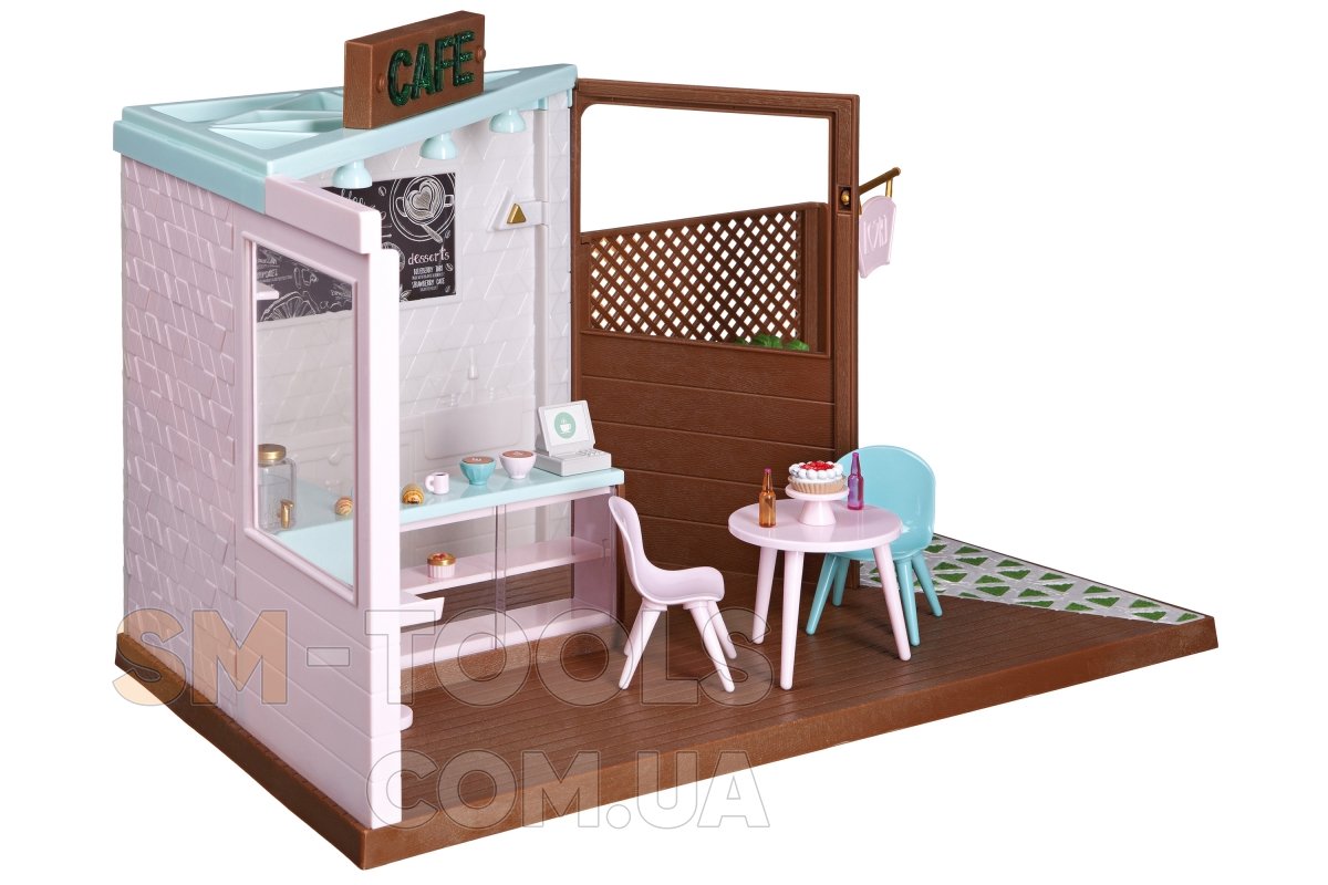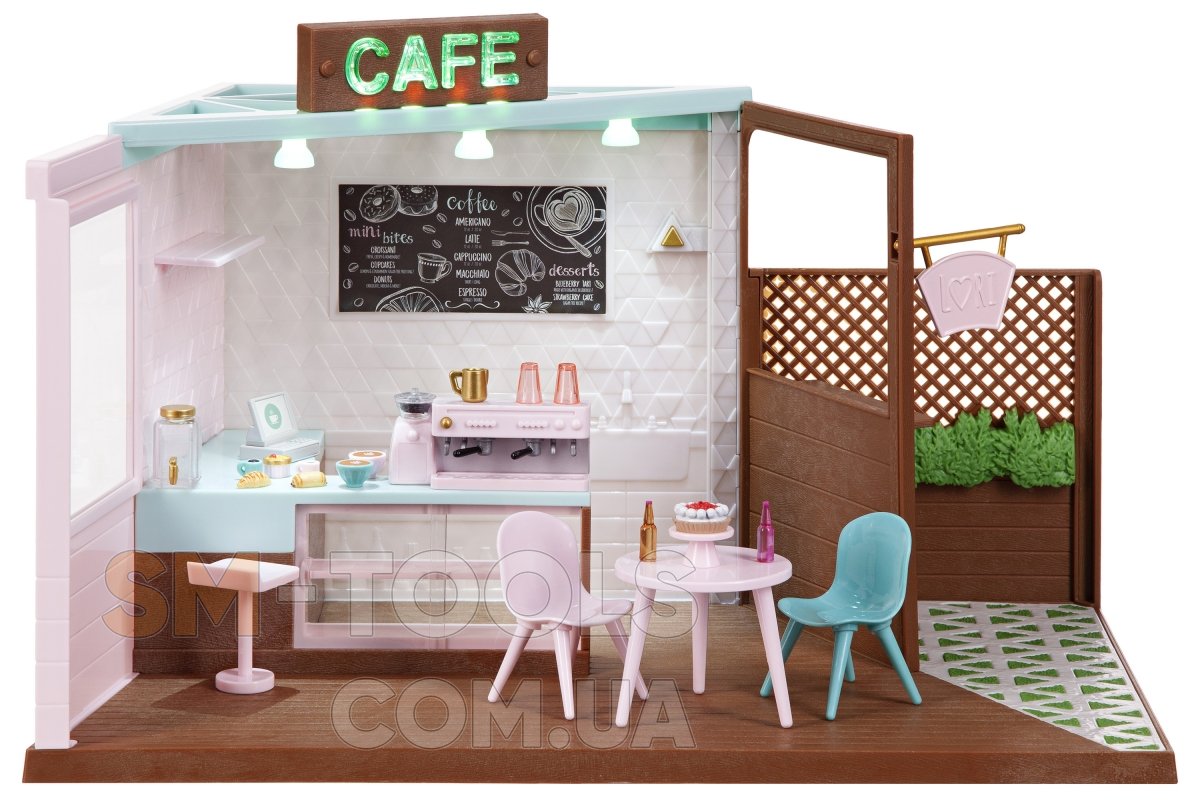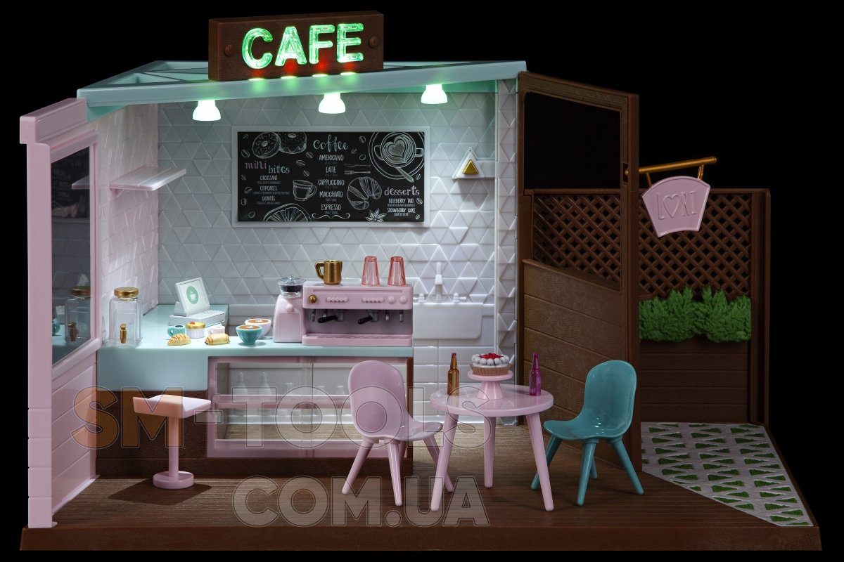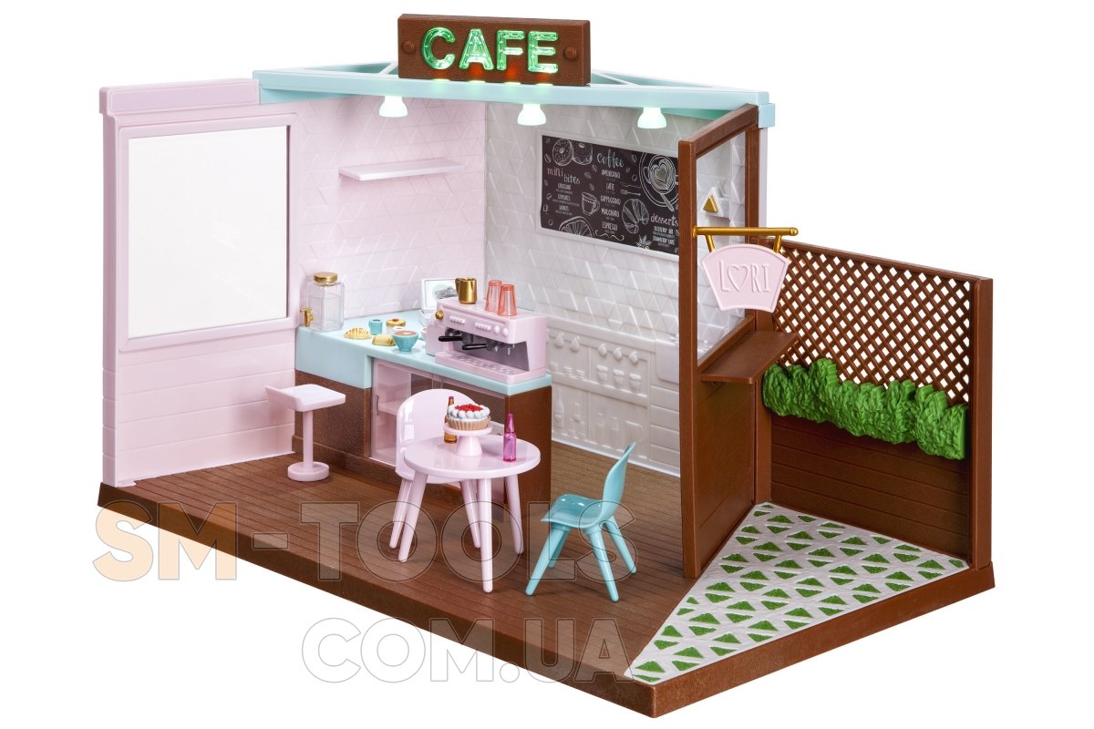 Игровой набор Кафе станет интересным и полезным дополнением к 15 см куклам Lori. Кукла Лори может пригласить подружек на вкусный кофе и пирожные. Набор выполнен в реалистичной манере: в кафе работает освещение, кофе-машина издает звук приготовления кофе. Кроме этого в игровом наборе присутствуют аксессуары, которые его дополняют и делают игру более увлекательной.