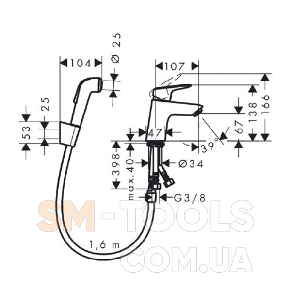 Змішувач з гігієнічним душем Hansgrohe Logis 71290000