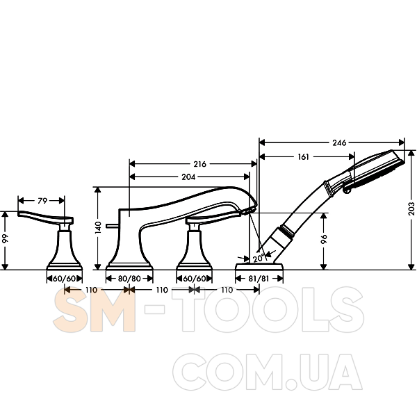 Змішувач для ванни Hansgrohe Metropol Classic 31441090
