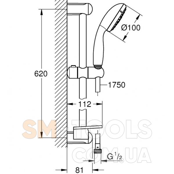 - ShockProof силиконовое кольцо, предотвращающее повреждение поверхности при падении ручного душа