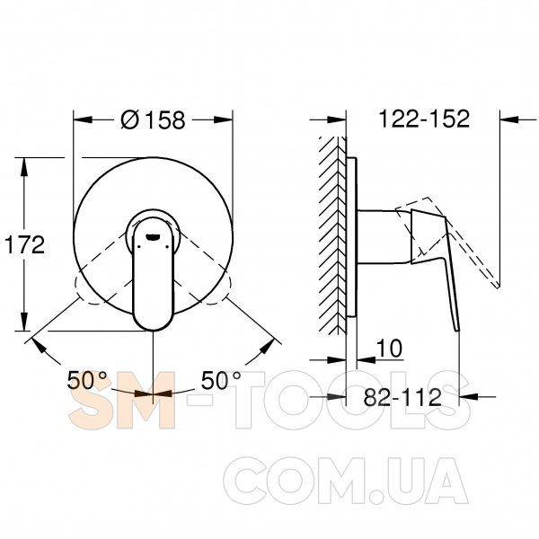 с настенными розетками GROHE QuickFix (скрытые эксцентрики, уплотнение, скрытый монтаж)