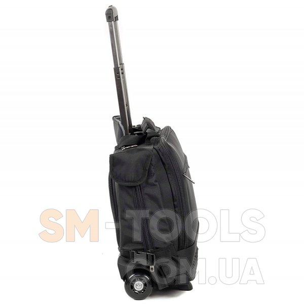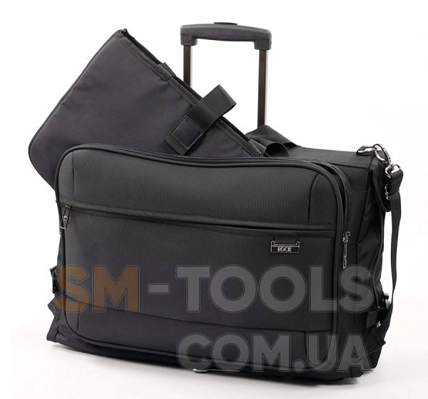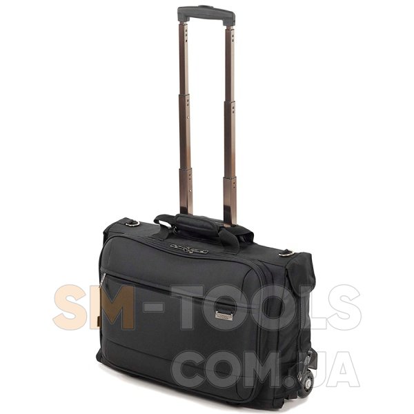 Сумку можно переносить в вертикальном положении, катить на колесах удерживая за телескопическую ручку, а также воспользоватся плечевым ремнем. Прочный и долговечный материал, из которого пошита сумка, обеспечивает надежную защиту вашим вещам и технике. Сумка имеет отдельные отсеки для держателей под одежду и ноутбука со сьемным боксом. При этом отделение ноутбука имеет внешний доступ, что очень важно, когда на контрольном пункте необходимо достать ноутбук при сканировании багажа. Сумка оснащена парой надежных роликовых колес. Эргономичная система выдвижной телескопической ручки с кнопочным фиксатором позволяет отрегулировать высоту ручки для дополнительного удобства и комфорта пользователя.