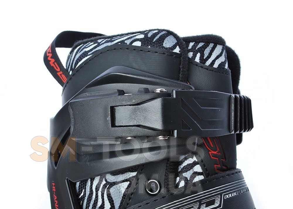 - Каркас ботинка состоит из 2-х частей, специальная фиксация двумя поперечными винтами пяточной части и центральным винтом передней части, одна двухсторонняя застежка AUTO LOCK, шнуровка, фиксированная в верхней части ремешком-липучкой;