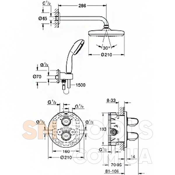 Диаметр верхнего душа (мм) 210