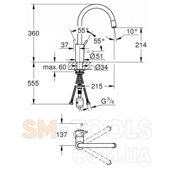 Высота смесителя, мм: 360 мм