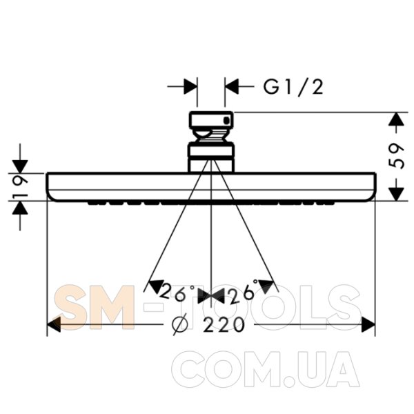 - Діаметр душового диска: 220 мм
