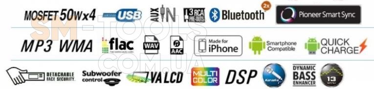 Вы не ошиблись! Система MVH-MS510BT - лучший представитель класса элитных автомобильных аудиосистем. Воспроизводит файлы FLAC, оборудована 13-полосным эквалайзером Graphic EQ, встроенным 4-х канальным усилителем звука MOSFET мощностью по 50 В, а в сочетании с приложением Smart Sync Pioneer обеспечивает качественно новое использование функциональности смартфона.